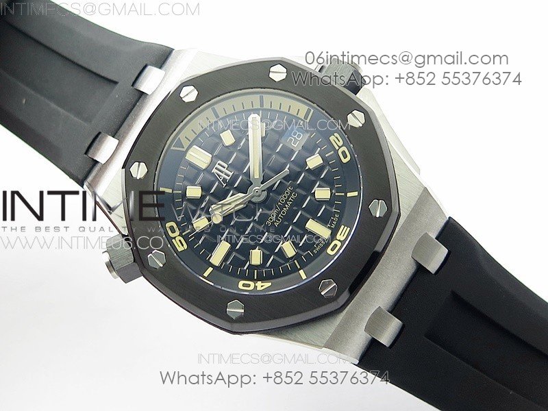 Royal Oak Offshore Diver 15720 Ceramic Bezel ZF 1:1 Best Edition Black Dial on Black Rubber Strap A4308