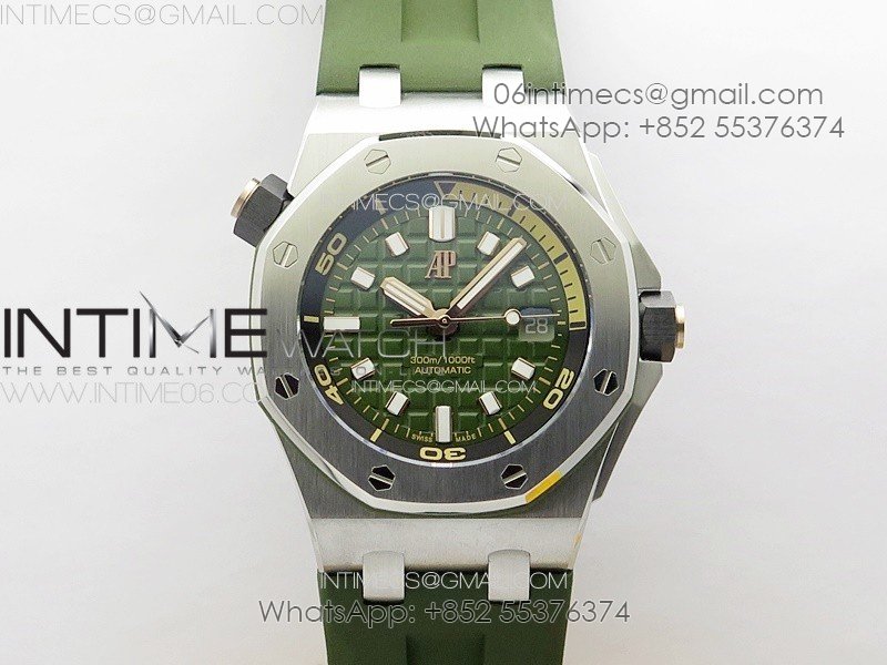 Royal Oak Offshore Diver 15720 IPF 1:1 Best Edition Green Dial on Green Rubber Strap A4308