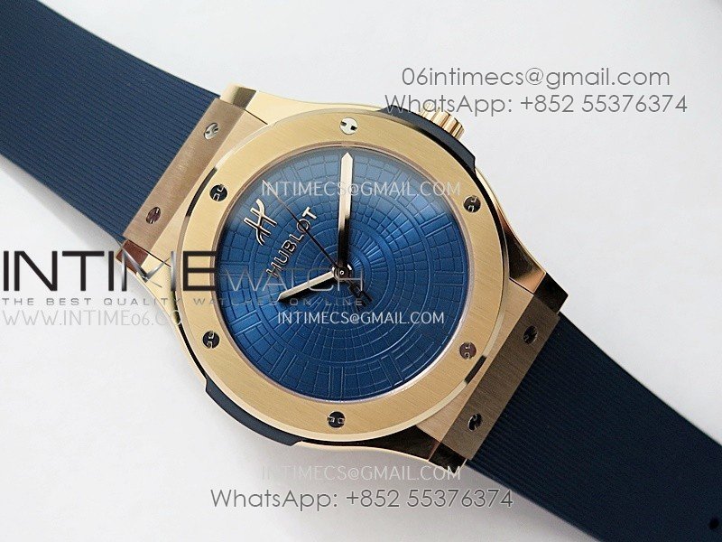 Classic Fusion 42mm RG JJZF 1:1 Best Edition Blue Textured Dial On Blue Rubber Strap Asian SW300