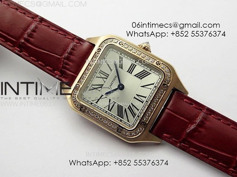 Santos Dumont 38mm RG/Diamonds Bezel F1F Best Edition Silver Dial on Red Leather Strap Quartz
