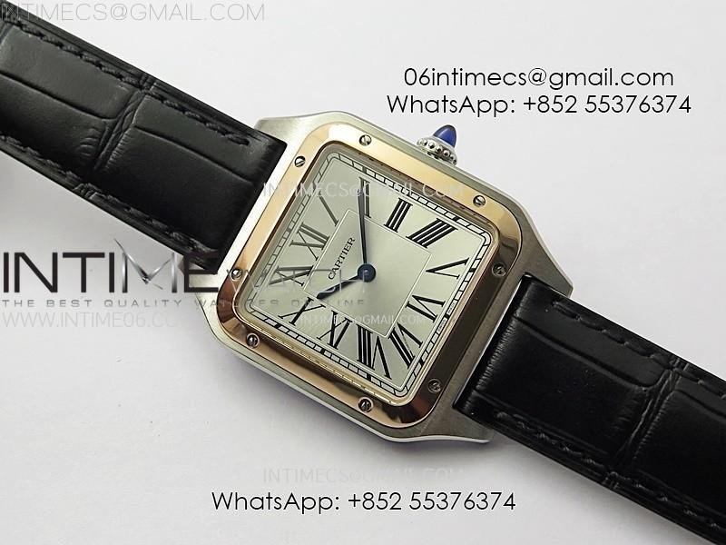 Santos Dumont 46.6mm SS/RG F1F Best Edition Silver Dial on Black Leather Strap Quartz