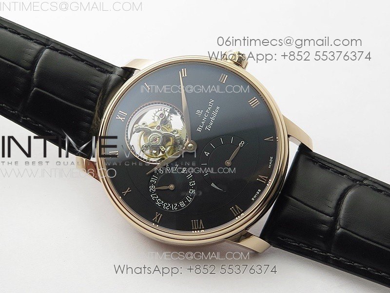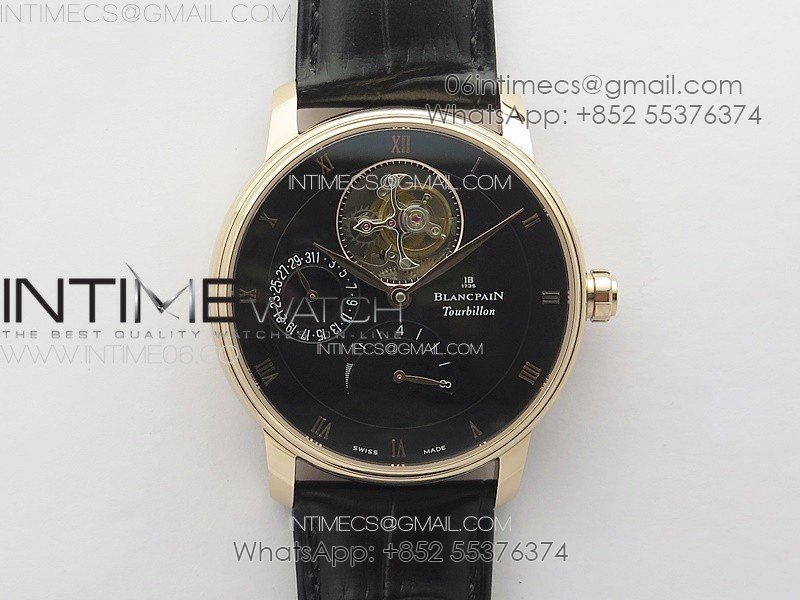 Villeret Tourbillon RG Real PR YSF Best Edition Black Dial on Black Leather Strap