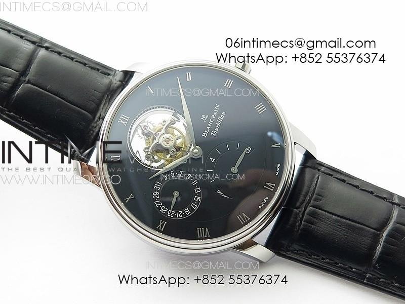 Villeret Tourbillon SS Real PR YSF Best Edition Black Dial on Black Leather Strap