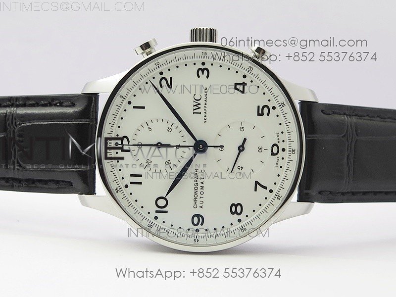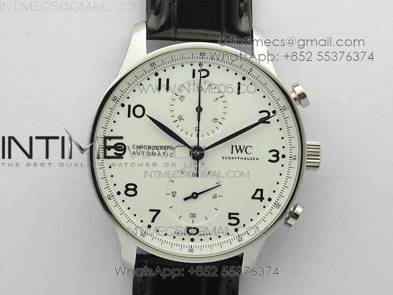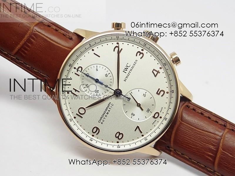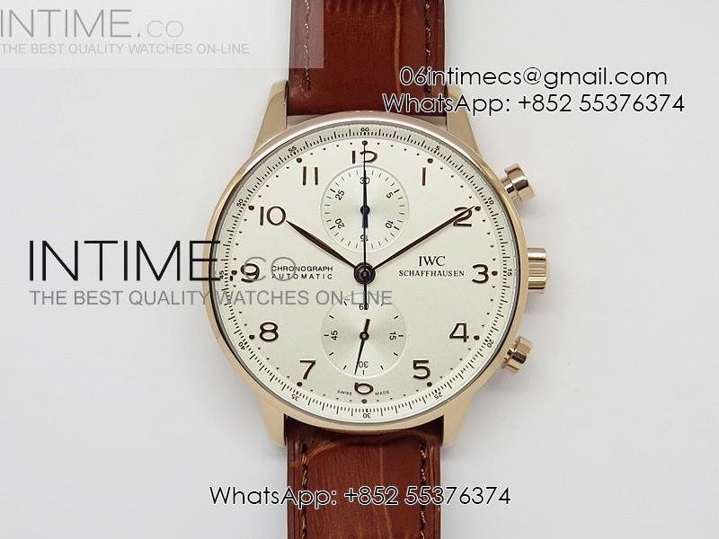 Portuguese 40mm Chrono RG White Dial on Leather Strap A7750