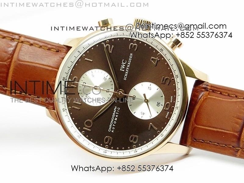 Portuguese 40mm Chrono RG Brown Dial Sliver Subdial on Leather Strap A7750