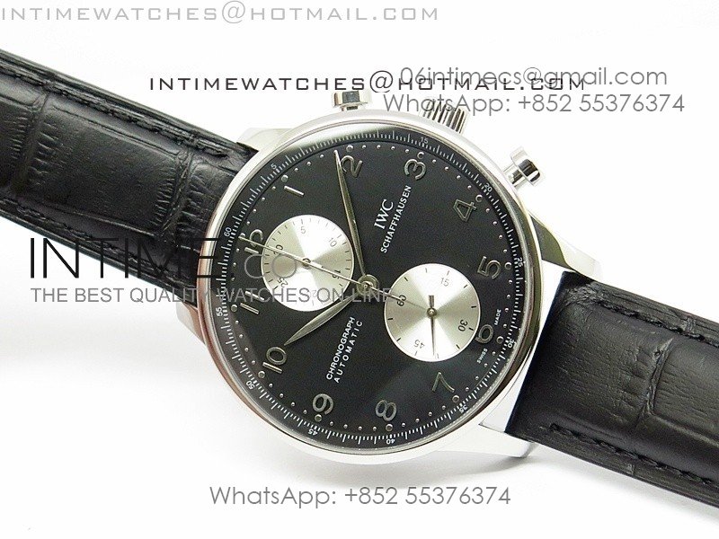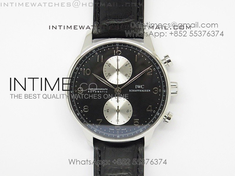 Portuguese 40mm Chrono SS Black Dial Sliver subdial on Leather Strap A7750