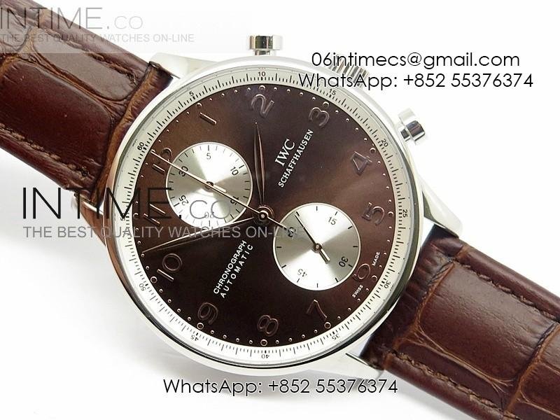 Portuguese 40mm Chrono SS Brown Dial Sliver subdial on Leather Strap A7750