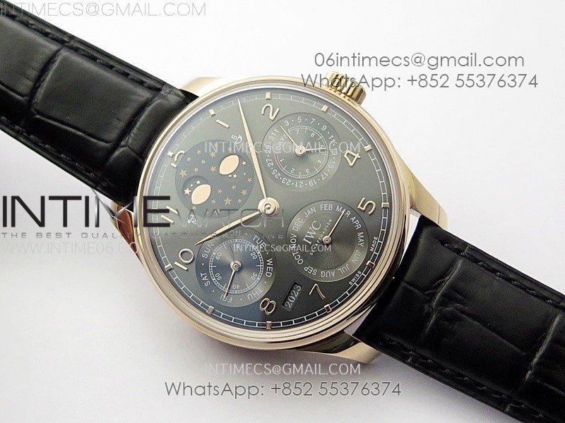 Portuguese IW503404 Real PR RG APSF 1:1 Best Edition Gray Dial On Black Leather Strap A52010