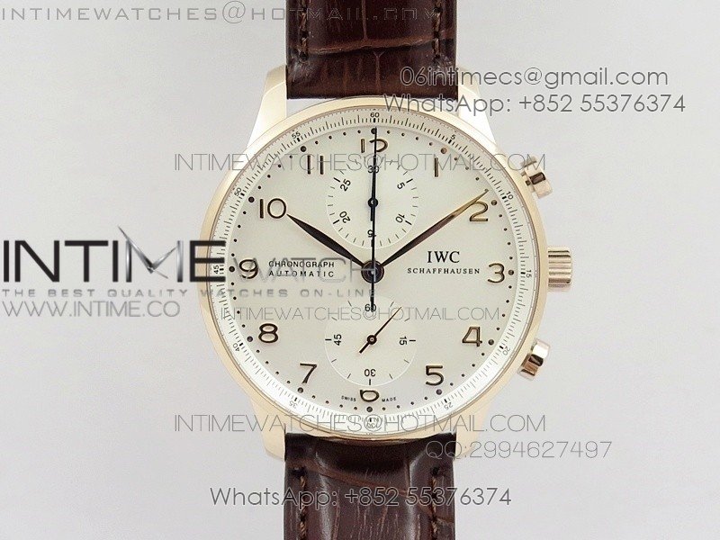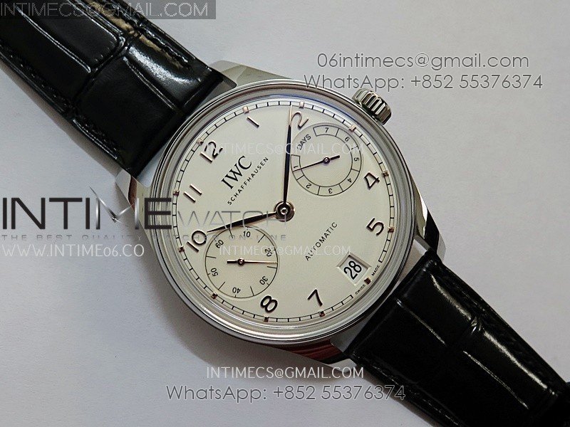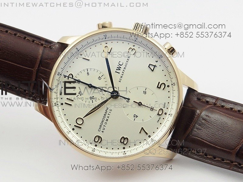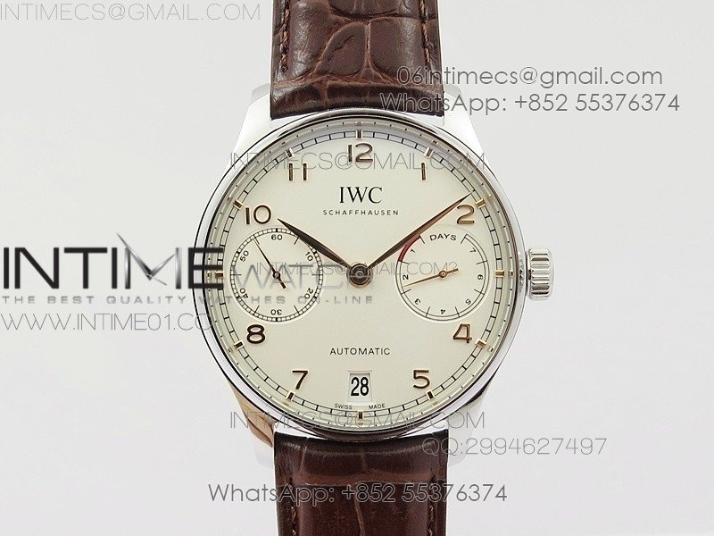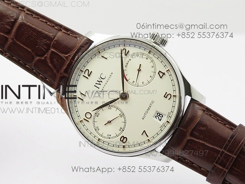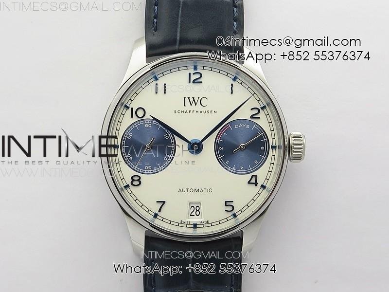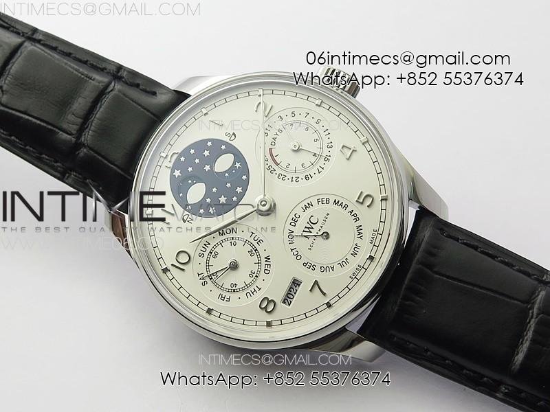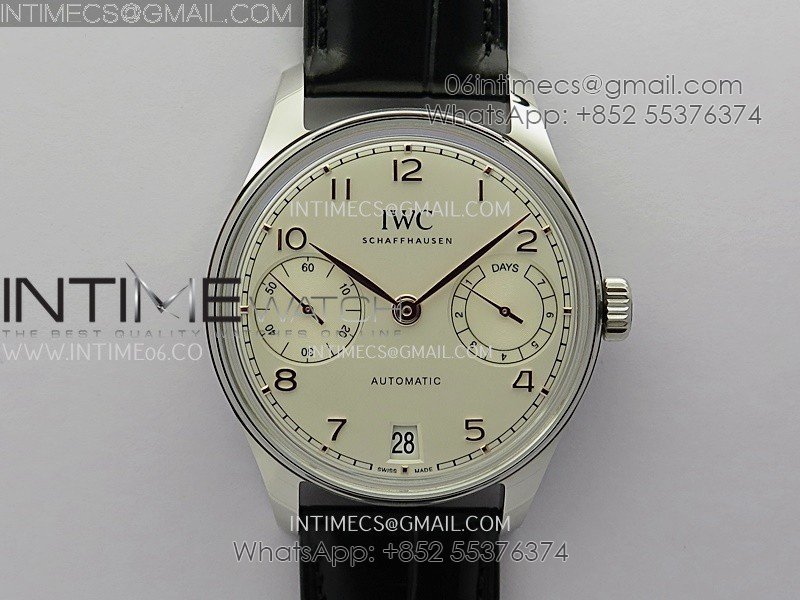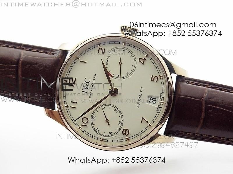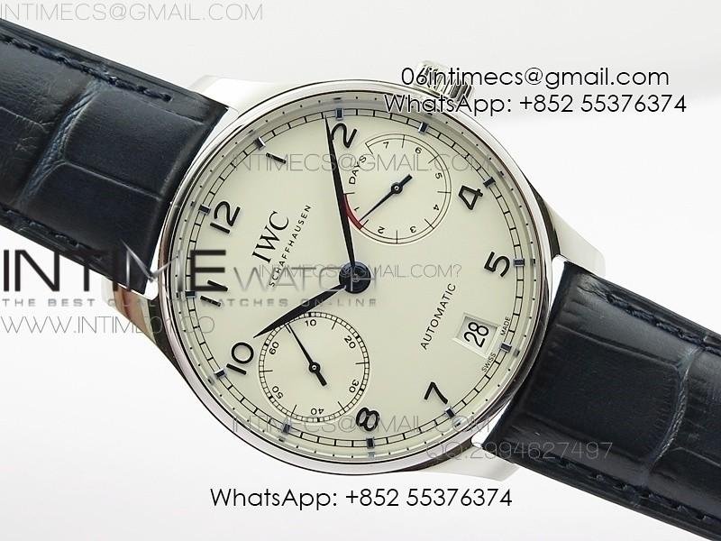 Portuguese Real PR IW501701 SS APSF 1:1 Best Edition Cream Dial RG Marker On Black Leather Strap A52010
