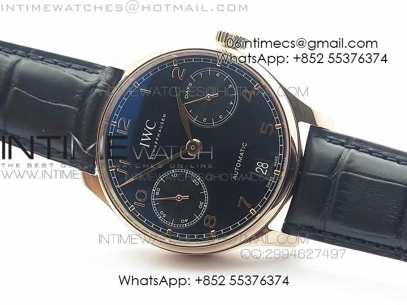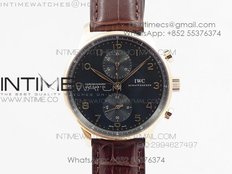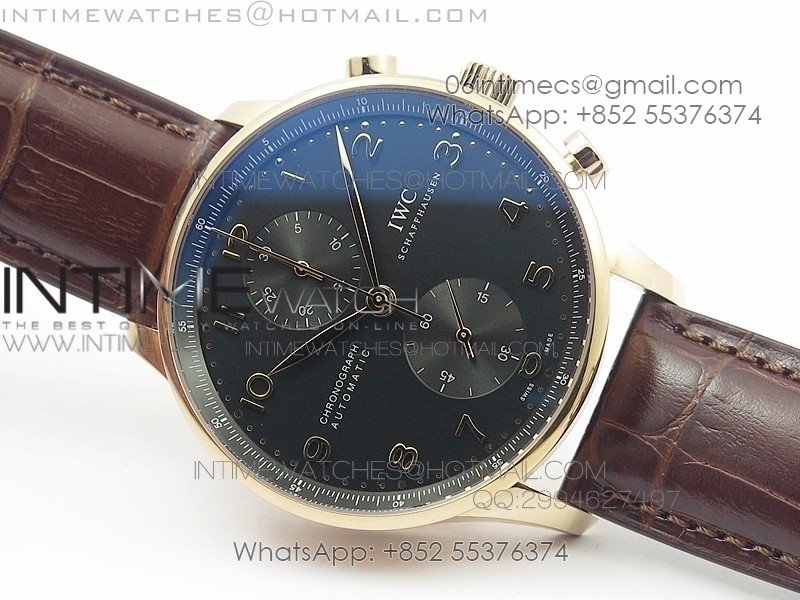 Portuguese IWC371415 ZF 1:1 Best Edition RG Black dial on Brown Leather Strap A7750