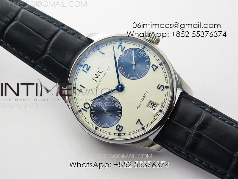 Portuguese Real PR IW500715 SS AZF 1:1 Best Edition White Dial Blue Subdial on Blue Leather Strap A52010