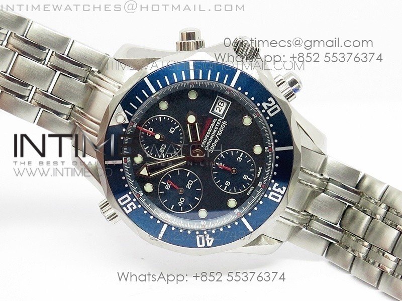 Seamaster 300M Chrono SS OMF 1:1 Best Edition Blue Dial on SS Bracelet A9900