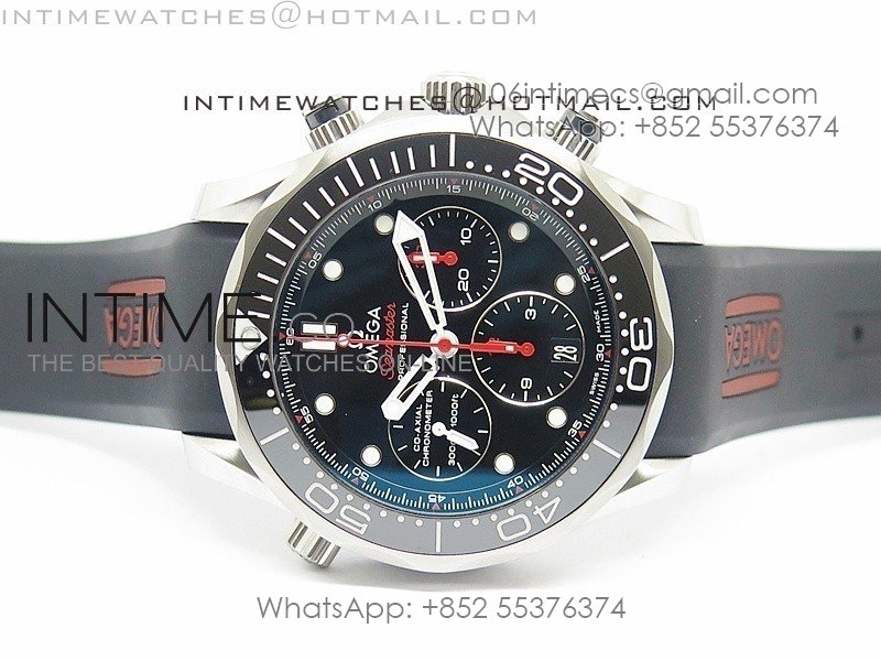 Seamaster 300M Chrono SS OMF 1:1 Best Edition Black Dial on Black Rubber Strap A9900