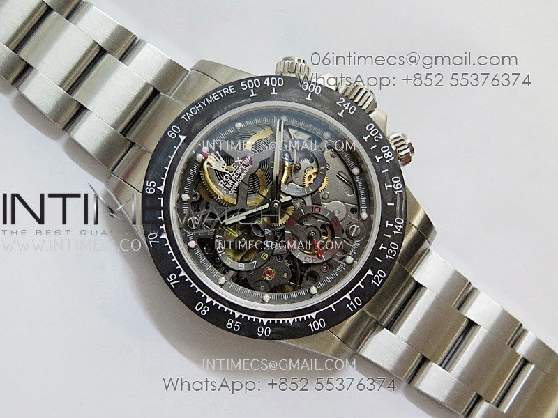 Size: 40mm x 14.5mmMovement: Asian 7750 automatic chronograph movement at 28800vphFunctions: Hours, minutes, sub-seconds display and chronographCase: DLC Black Solid