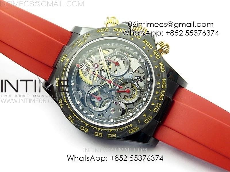 Daytona PVD Ceramic Bezel GETF Best Edition Skeleton Red Dial on Red Rubber Strap SA4130