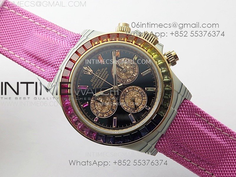 Daytona Rainbow Bezel White Carbon Case GETF Best Black Dial on Pink Nylon Strap SA4130