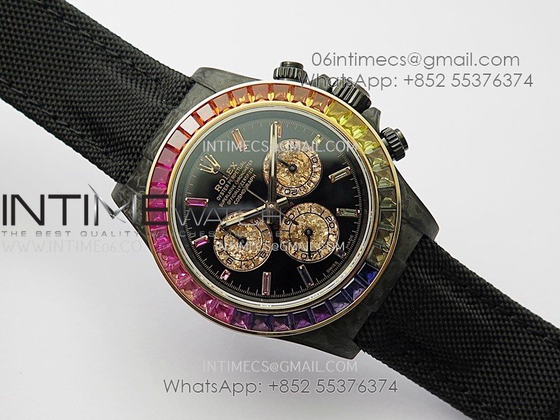 Daytona Rainbow Black Carbon SONIC 1:1 Best Edition Black Rainbow Dial on Black Nylon Strap SA4130