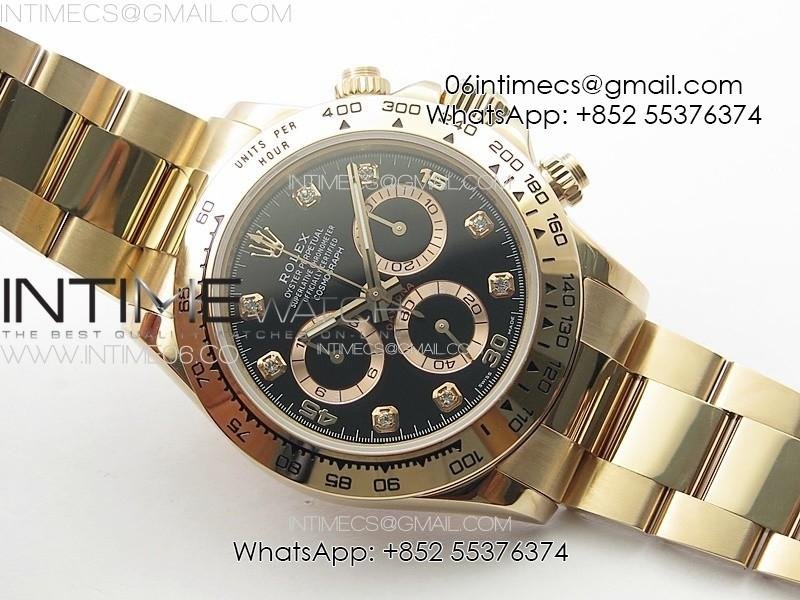Daytona 116506 RG APSF Black Dial Crytals Markers On RG Bracelet Slim A7750