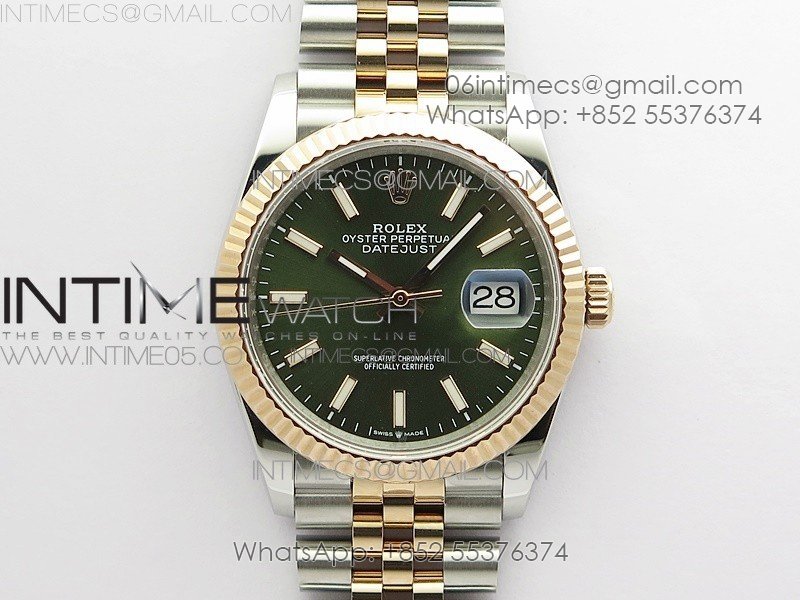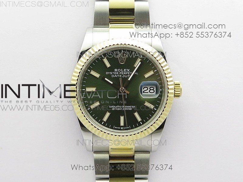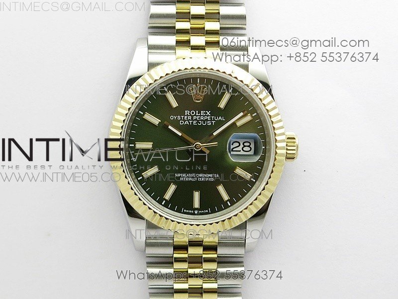 Datejust 36mm 116231 SS/YG BP 1:1 Best Edition Green Dial Stick Markers On SS/YG Jubilee Bracelet A2824