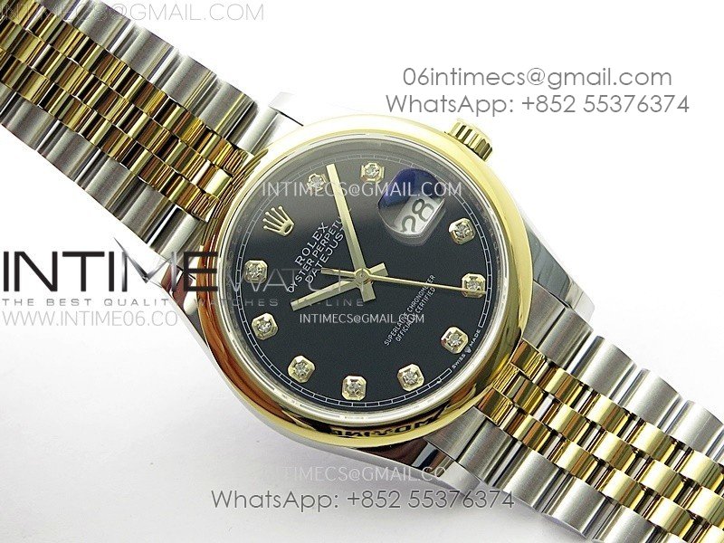 DateJust 36MM 126203 SS/YG APSF 1:1 Best Edition Black Dial Diamond Markers on SS/YG Jubilee Bracelet SA3235