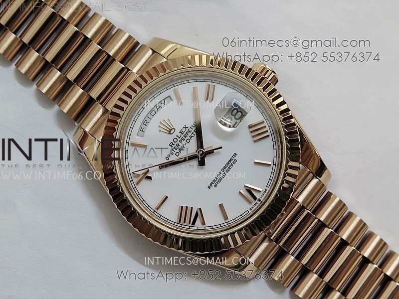 Day Date 228235 40mm RG KF 1:1 Best Edition White Dial Roman Markers On RG President Bracelet SA3255 (Gain Weight)