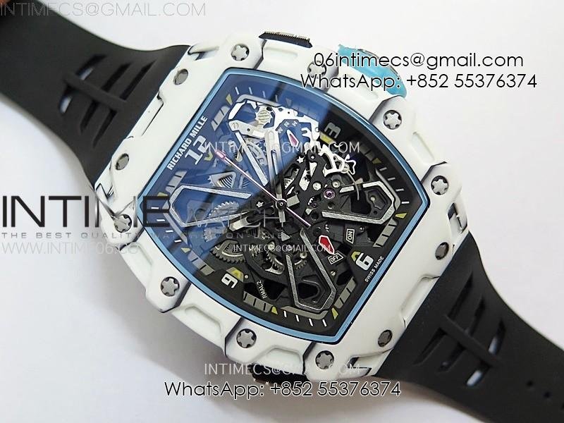 RM035-03 White Carbon/Blue Crown Z Factory Skeleton Dial on Black Rubber Strap Asian Skeleton movement