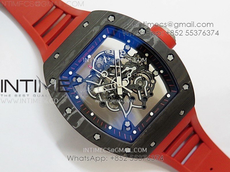 RM055 Black Carbon Bezel Black Crown NTPT/Ti ZF 1:1 Best Edition on Red Rubber Strap RMUL2 Super Clone