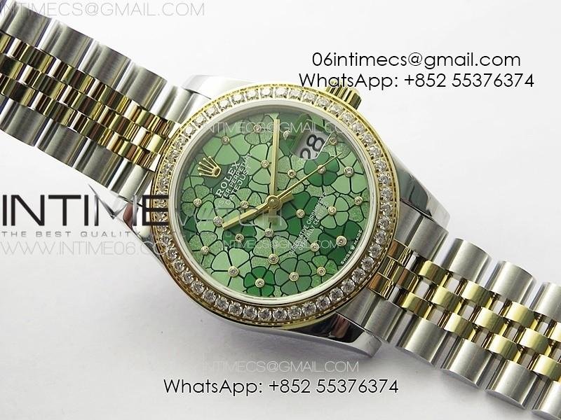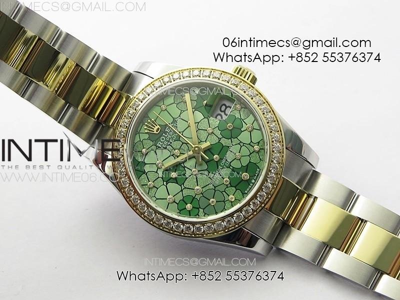 DateJust 31mm 278274 904L SS/YG Crystals Bezel GMF Best Edition Green Flowers Crystals Dial on 904L SS/YG Oyster Bracelet A2824