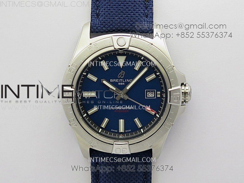 Avenger Chronometer 42mm SS BLSF 1:1 Best Edition Blue Dial On Blue Nylon Strap A2824
