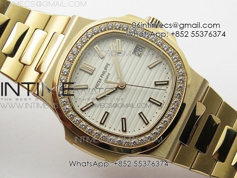 Nautilus 5711/1R Crystal Bezel PPF V4 1:1 Best Edition White Textured Dial on RG Bracelet 324CS