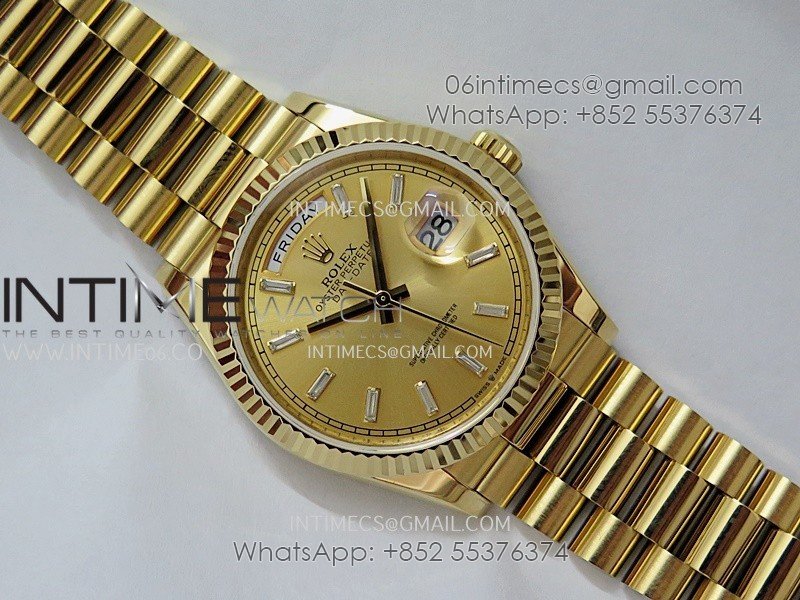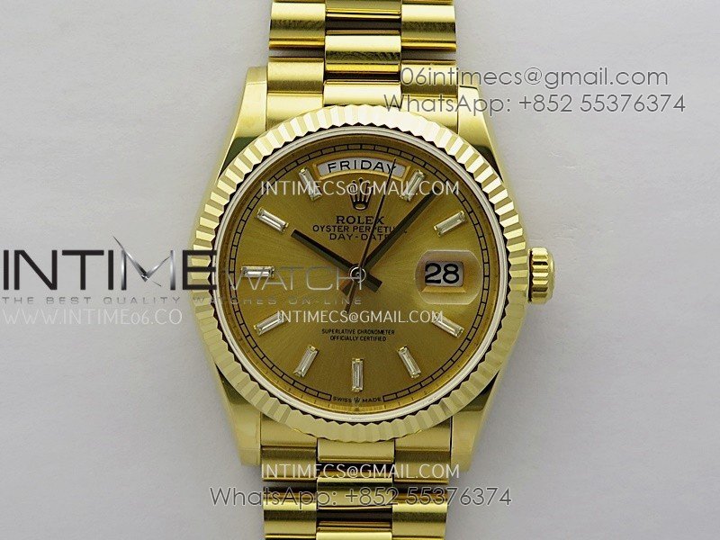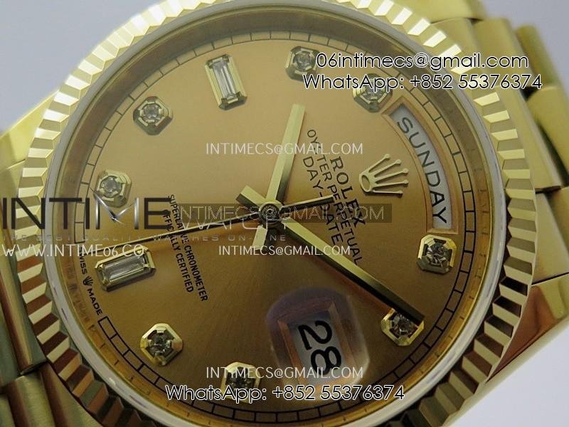 Day Date 128238 36mm YG KF 1:1 Best Edition YG Dial T Diamond Marker On President Bracelet A2836 (Gain Weight)