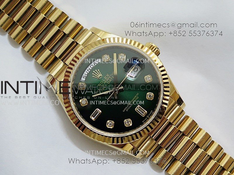 Day Date 128238 36mm YG KF 1:1 Best Edition Green Ombre Dial Diamond Marker On President Bracelet A2836 (Gain Weight)