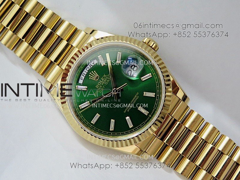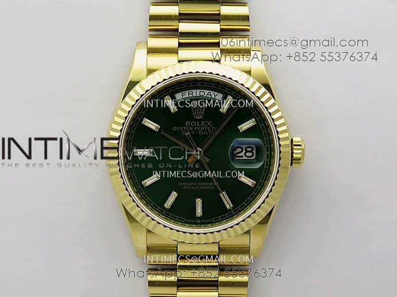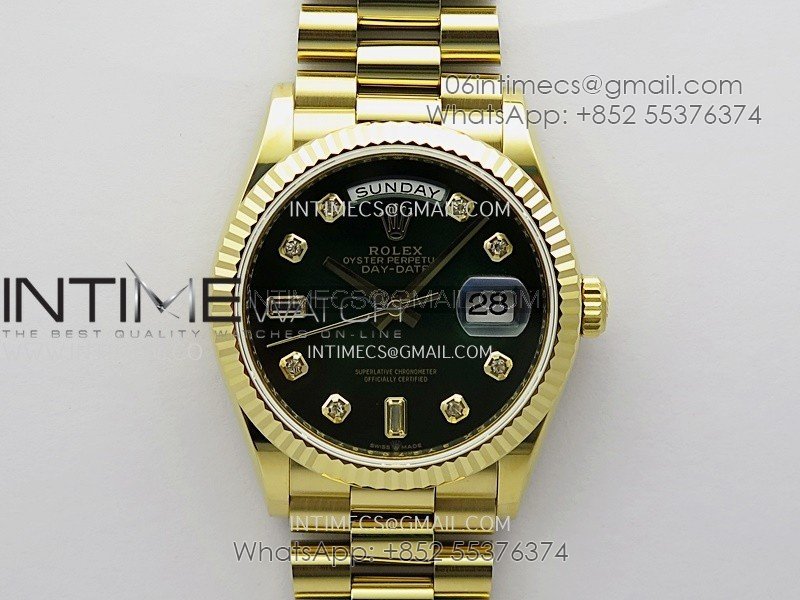 Day Date 128238 36mm YG KF 1:1 Best Edition Green Dial T Diamond Marker On President Bracelet A2836 (Gain Weight)