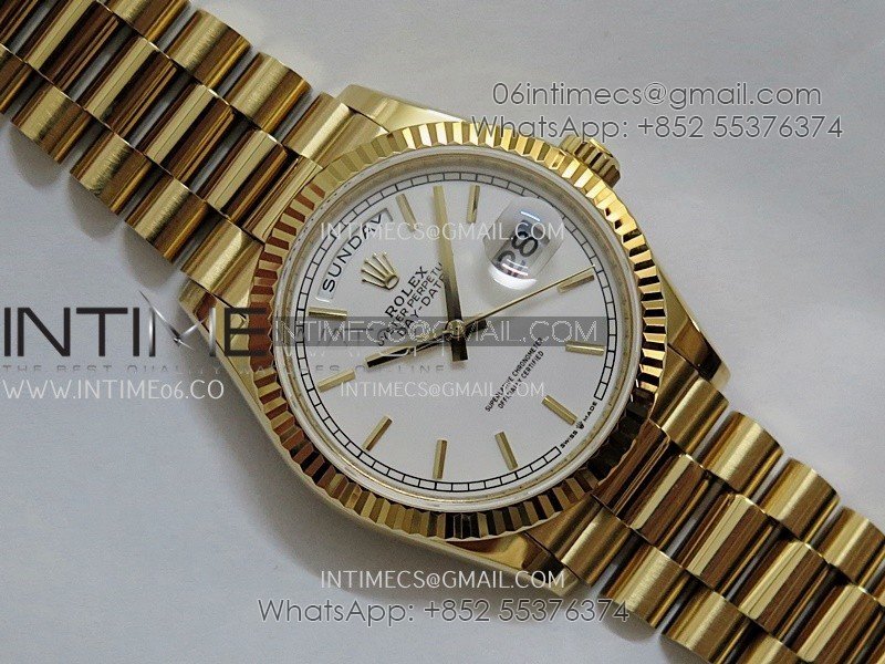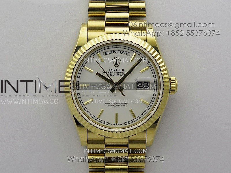Day Date 128238 36mm YG KF 1:1 Best Edition White Dial Stick Marker On President Bracelet A2836 (Gain Weight)
