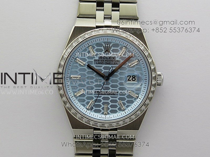 Land Dweller 127386 Diamond Bezel SS ESF Ice Blue Dial T Diamond Marker On SS Bracelet A7135