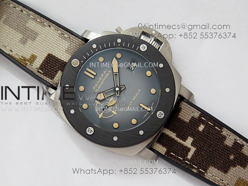 PAM1669 Carbotech 47mm VSF 1:1 Best Edition Ombre Black Dial Blue Markers On Camouflage Strap P.900 Clone