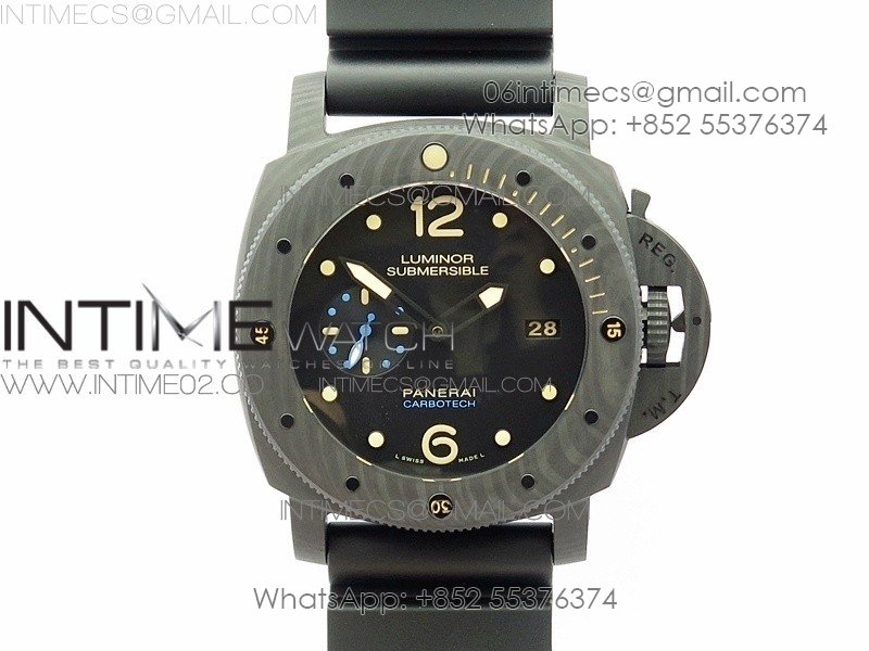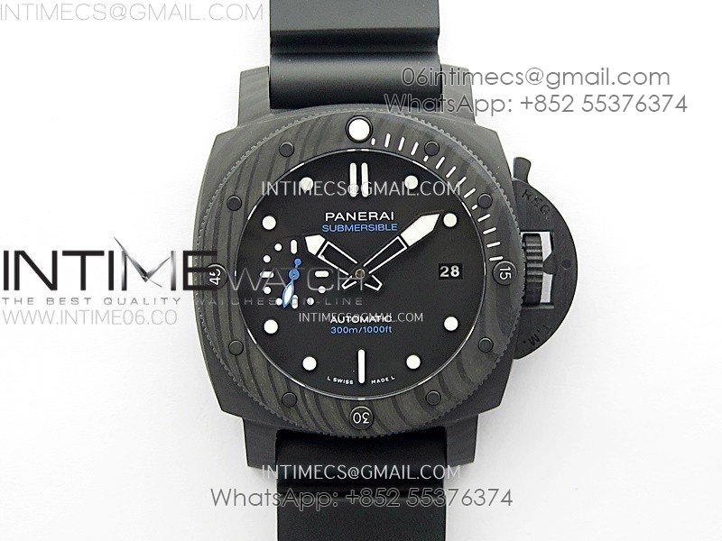 PAM1616 Carbotech 47mm VSF Best Edition Black Dial Blue Markers on Rubber Strap P.9010 Clone