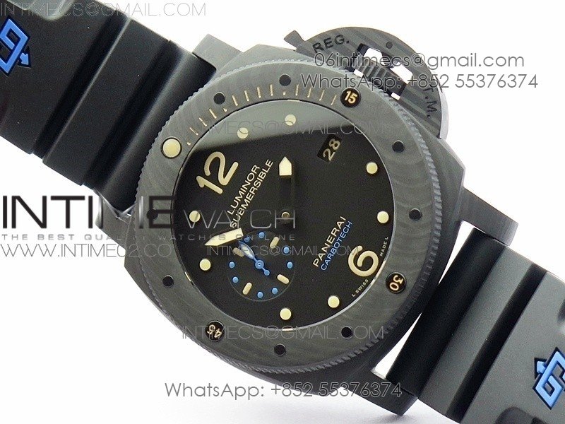 PAM616 Carbotech V3 VSF 1:1 Best Edition on Blue Logo Black Rubber Strap P9000