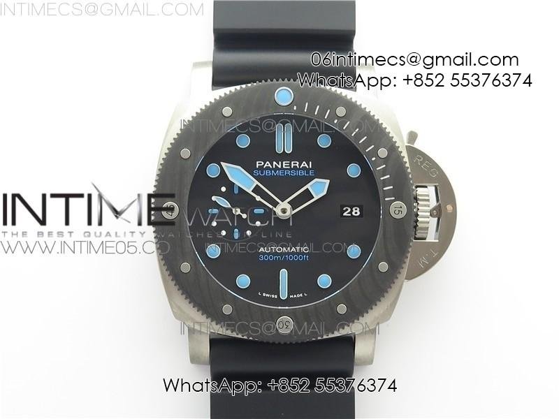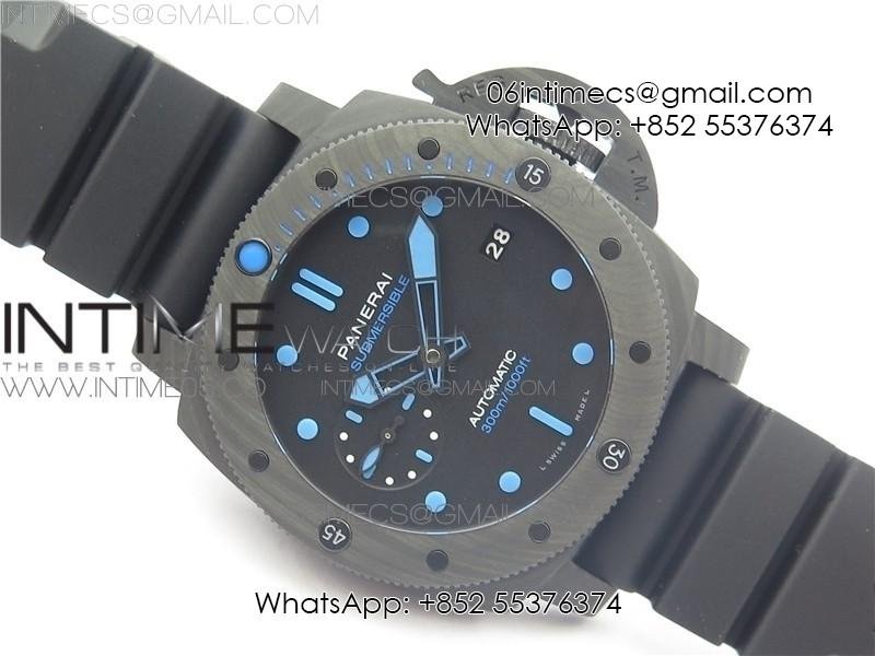 PAM960 Carbotech 42mm VSF 1:1 Best Edition Black Dial Blue Markers on Rubber Strap P.9010 Clone