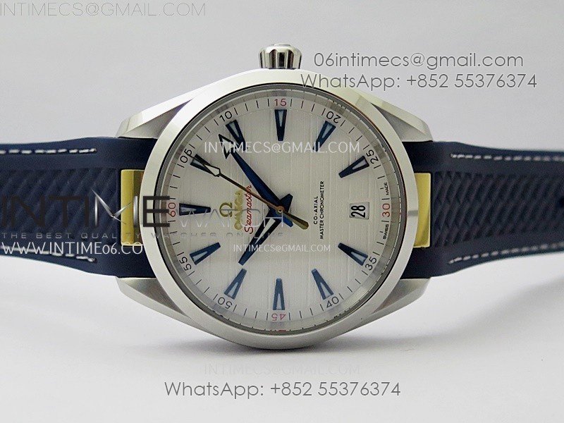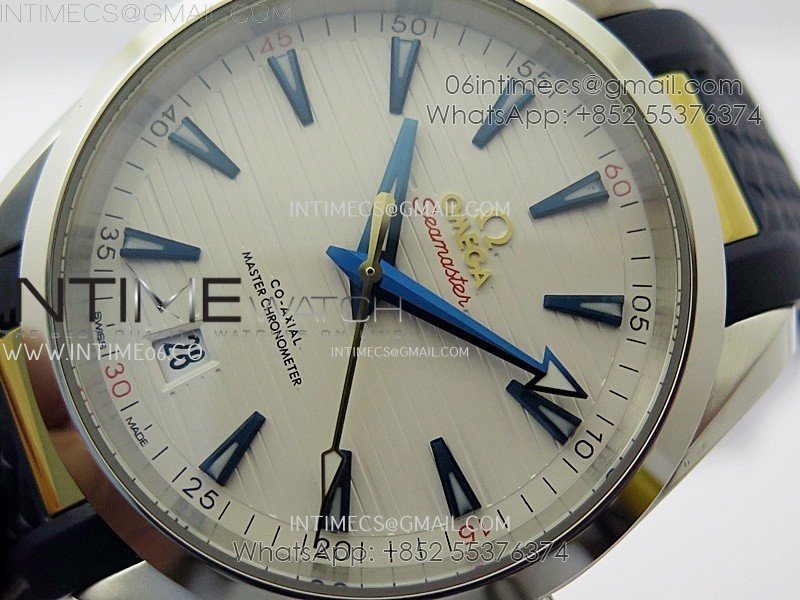 Aqua Terra 150M Master Chronometers N1F Best Edition White Textured Dial Blue Markers on Blue Rubber Strap A8900