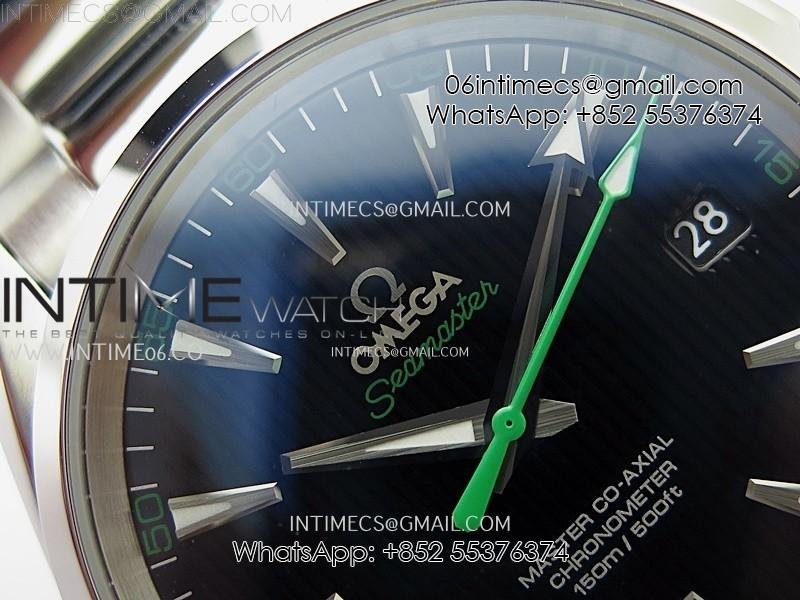 Aqua Terra 150M Seamaster SS N1F Best Edition Black Textured Dial Green Second Hand on SS Bracelet A8500