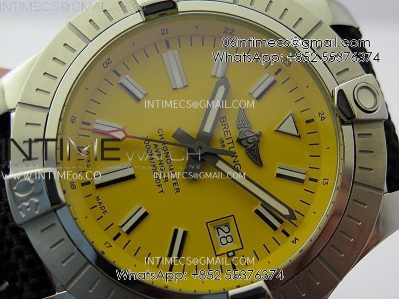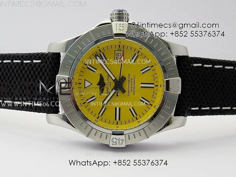 Avenger Automatic 43mm SS TF 1:1 Best Edition Yellow Dial Stick Marker on Black Nylon Strap A2824