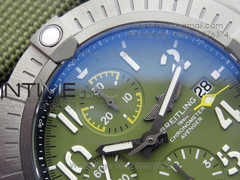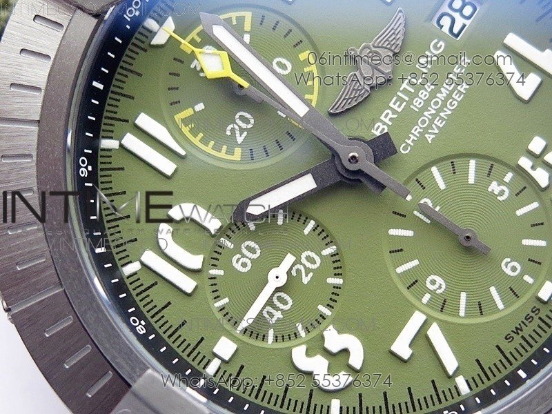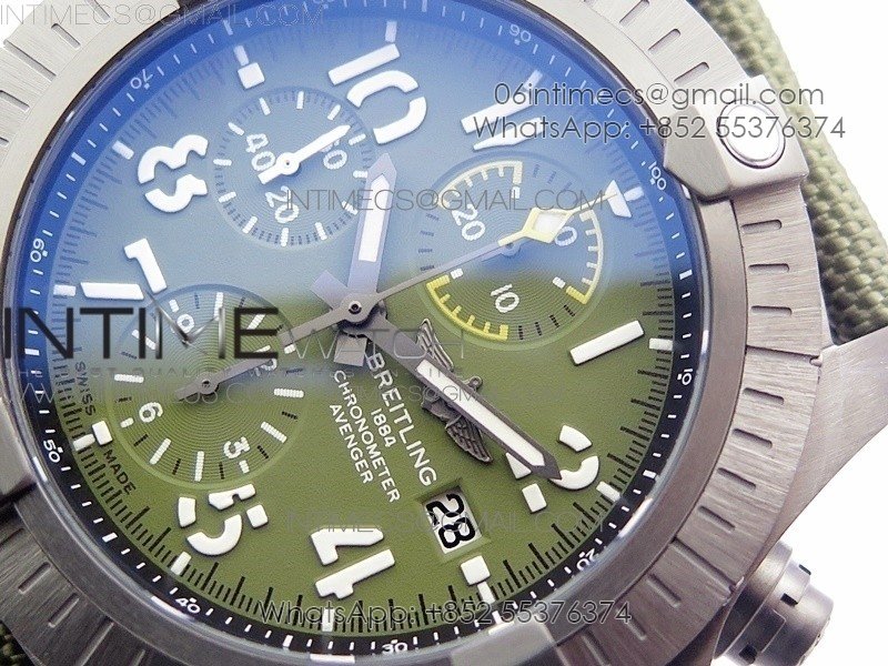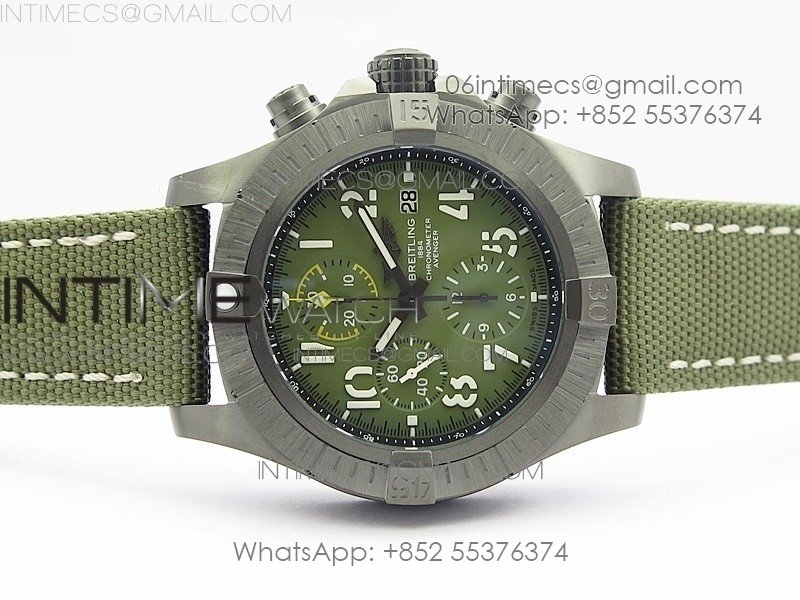 Avenger Bandit V13317 Titanium DLC B50 Best Edition Green Dial Numbers Makers on Green Nylon strap A7750