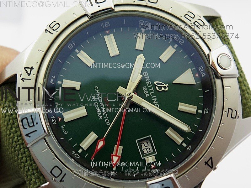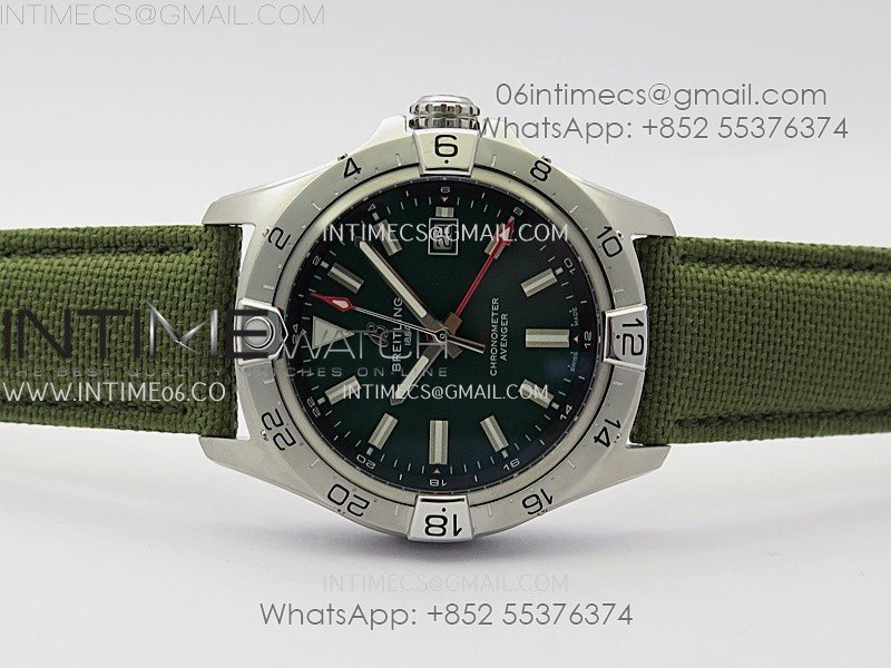 Avenger Chronometer 42mm GMT SS BLSF 1:1 Best Version Green Dial On Green Nylon Strap A2836