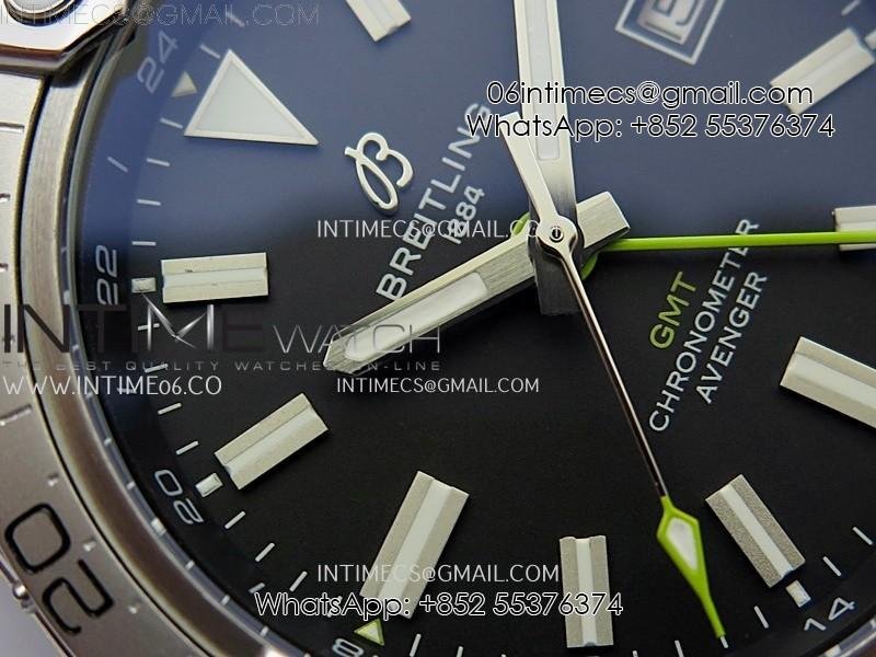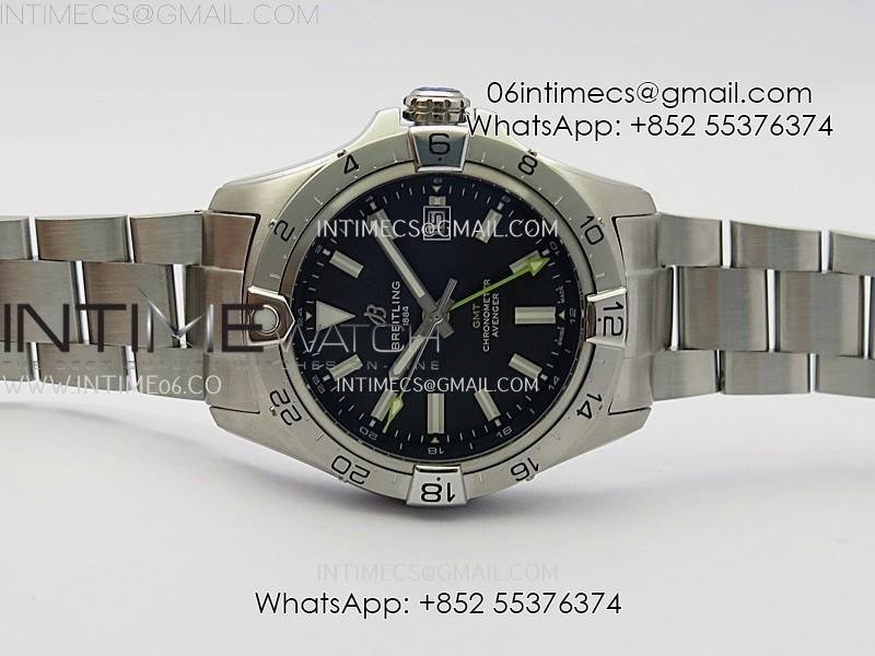Avenger Chronometer 42mm GMT Yellow Second Hand SS BLSF 1:1 Best Version Black Dial On SS Bracelet A2836