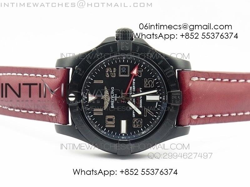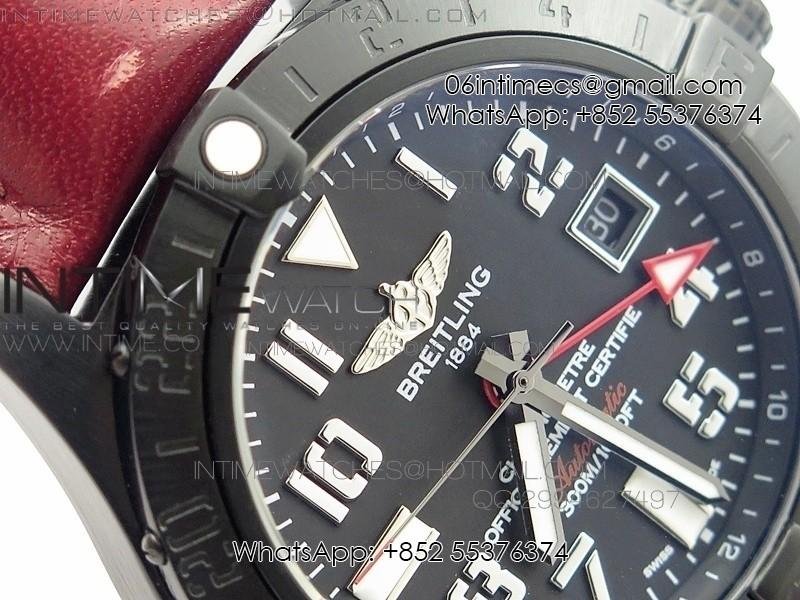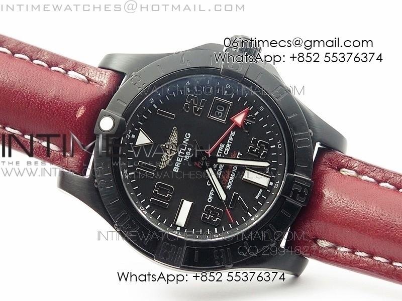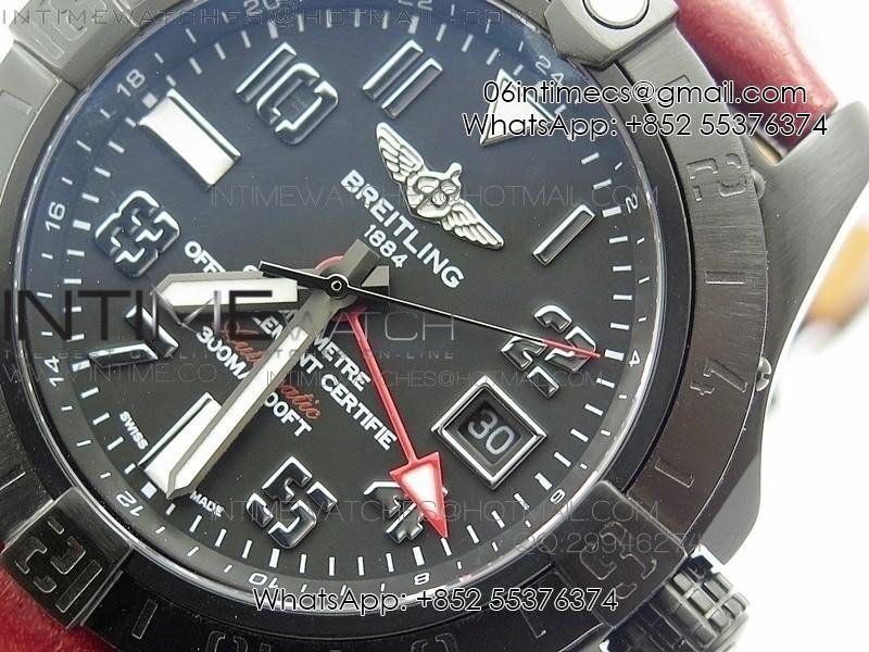 Avenger GMT DLC Black Numeral Marker Textured Dial on Leather strap A2836