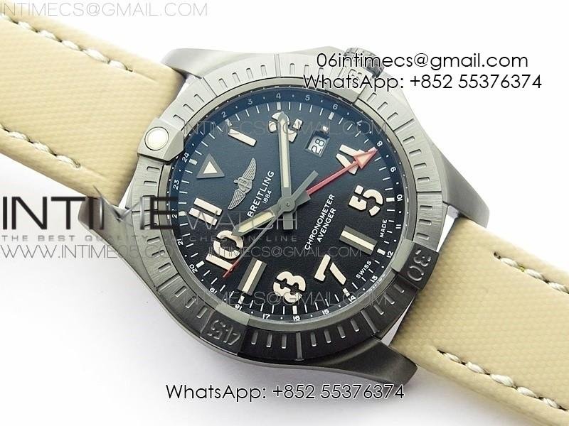 AVENGER V32395 Ti DLC 1:1 Best Edition Black Dial on Leather Strap A2824