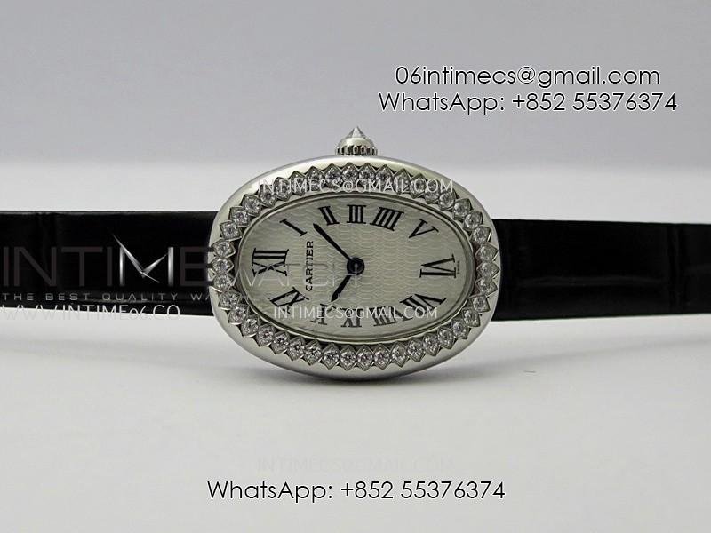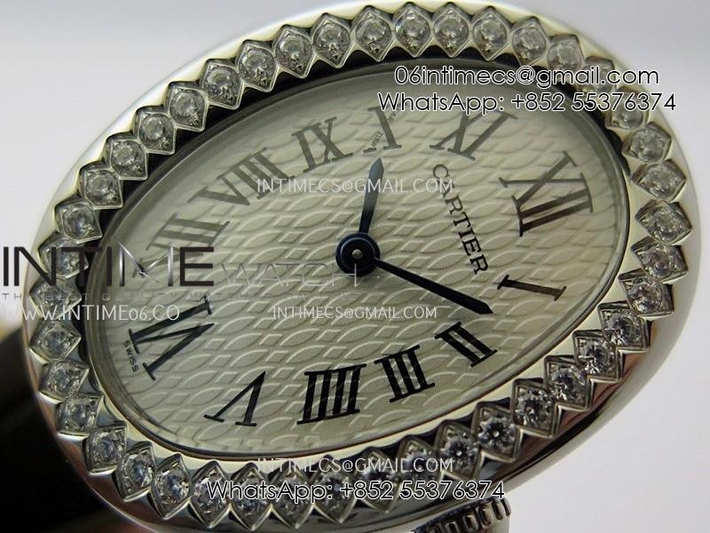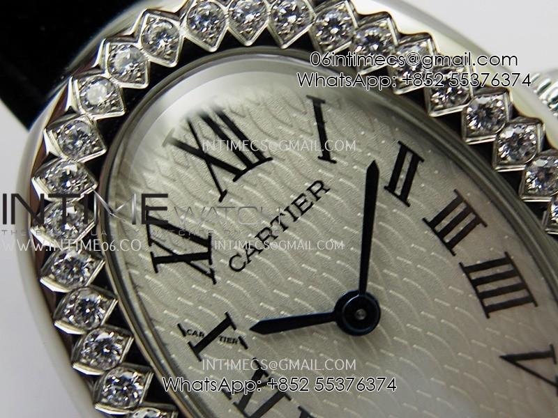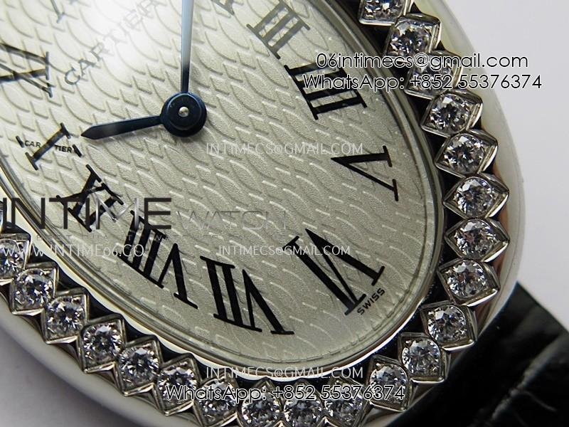Baignoire Watch Diamond Bezel SS AF 1:1 Best Edition White textured Dial On Black Croco Strap RONDA Quartz