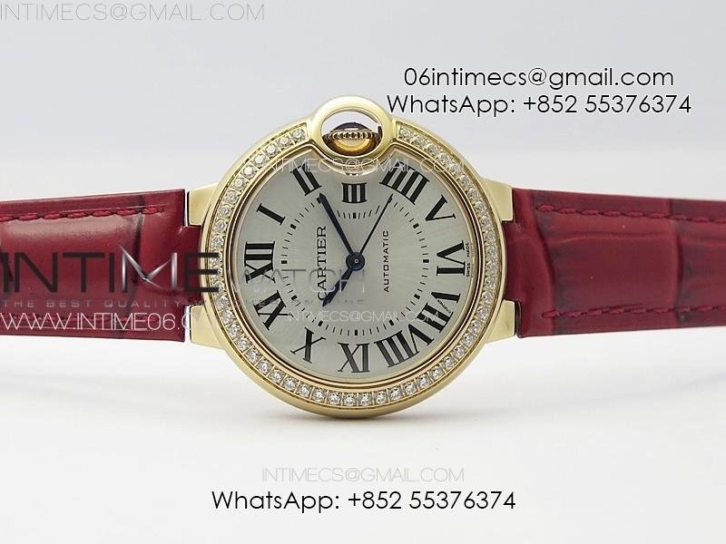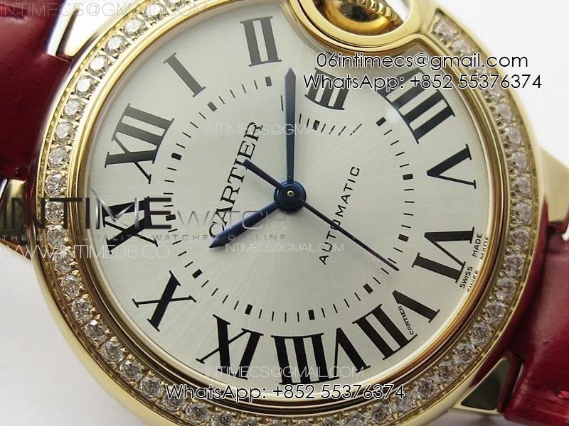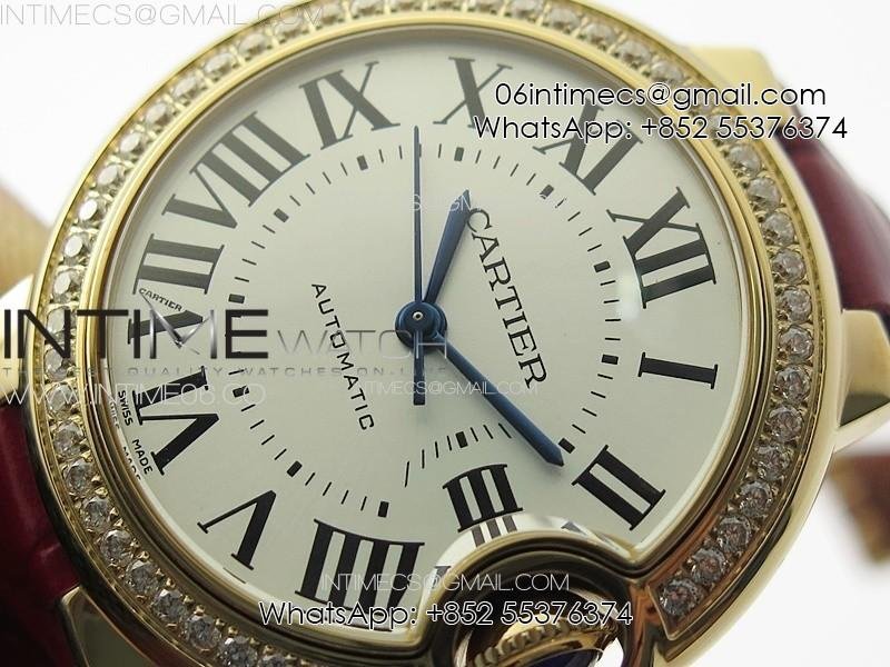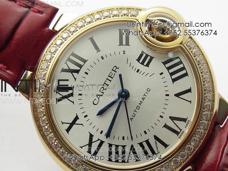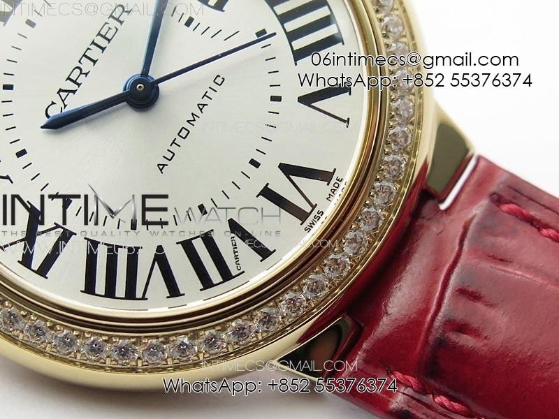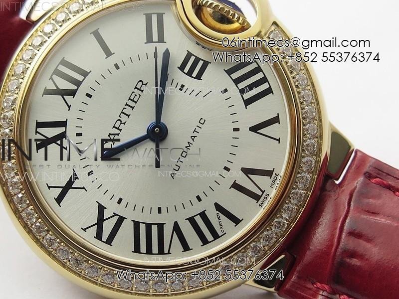 Ballon Bleu 33mm Diamonds Bezel RG 3KF 1:1 Best Edition White Dial on Red Leather Strap A076