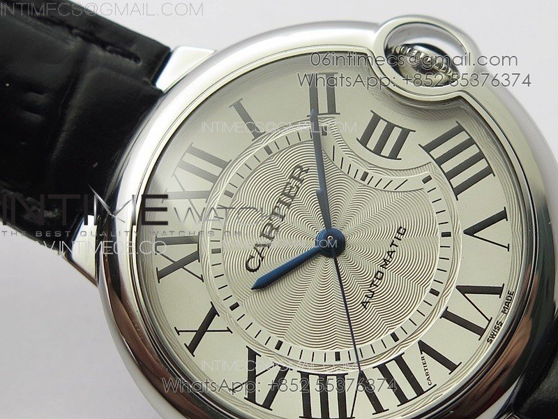 Ballon Bleu 36mm SS 3KF 1:1 Best Edition White Textured Dial on Black Leather Strap A076